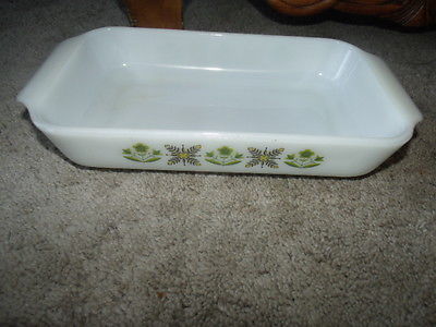 Vintage Anchor Hocking Fire King Milk Glass Casserole Dish Meadow Green 432 1.5