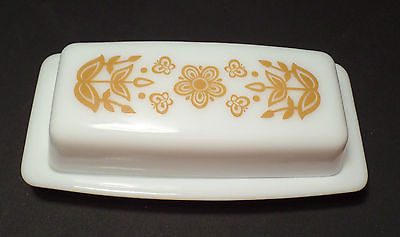 Vintage Pyrex Covered Butter Dish Corning Corelle Butterfly Gold Milk Glass WOW