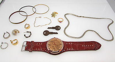JUNK DRAWER LOT_WATCH,KEYS,EAR RINGS,CHAIN,VINTAGE JEWELRY FINDINGS_SCRAP or NOT
