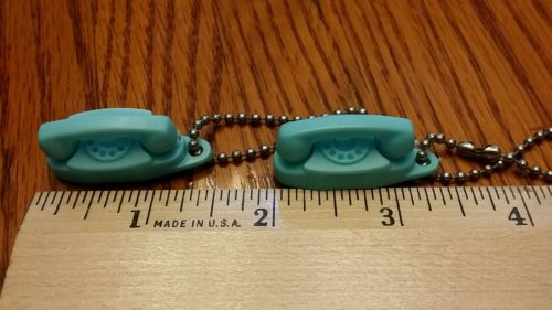 LOT OF 2 VINTAGE BELL AQUA PRINCESS PHONE KEYCHAIN CHARMS NEW