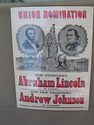VINTAGE PRESIDENT POLICIAL CAMPAIGN POSTER LINCOLN & JOHNSON,UNION NOMINATION