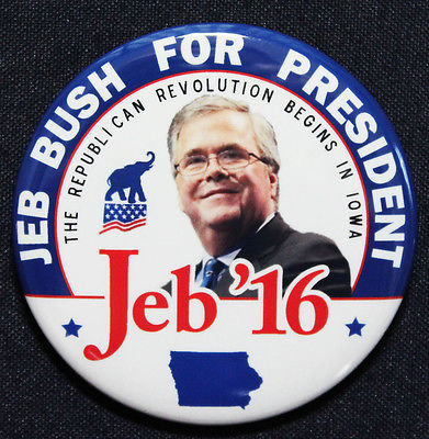 Title (ebay affiliate link): JEB BUSH FOR PRESIDENT 2016 POLITICAL CAMPAIGN BUTTON