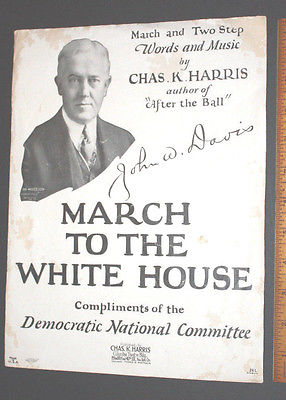 1924 John W. Davis "MARCH TO THE WHITE HOUSE" Sheet Music Dem. Nat. Comm. no min
