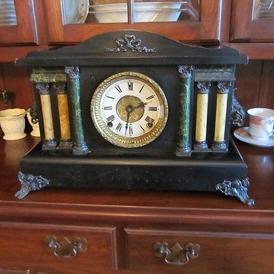 Title (ebay affiliate link): ANTIQUE 6 COLUMN ADAMANTINE CLOCK 8-DAY HALF HR STRIKE CATHEDRAL GONG