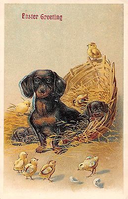Easter Greetings Dachshunds & Chicks Antique Postcard (J37210)