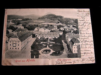 Title (ebay affiliate link): 1905 GRUSS AUS HAIDA CZECH REPUBLIC POSTCARD - MAIN STREET PLAZA CITY VIEW