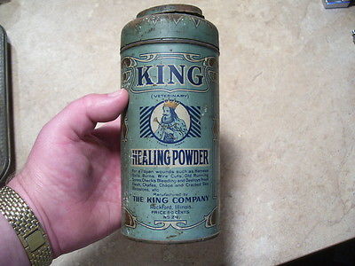 Antique Metal Advertising Tin King Veterinary Healing Powder