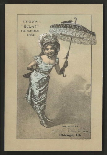 Title (ebay affiliate link): Lyon's "Eclat" Parasols, 1883, Marshall Fields, Chicago, IL