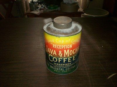 Title (ebay affiliate link): Vintage Reception Java & Mocha Coffee Tin Oriental Coffee Co. Advertising!