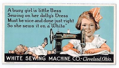 Title (ebay affiliate link): Vtg Ink Blotter Little Girl Mending Doll Clothes w White Sewing Machine 1930s