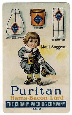 Title (ebay affiliate link): 1918 Vtg Cudahy Packing Co. Pocket Calendar w Cute Little Puritan Selling Hams
