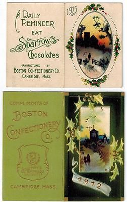 2 Antique Sparrow Chocolates Embossed Folding Calendar Trade Cards 1912 & 1915