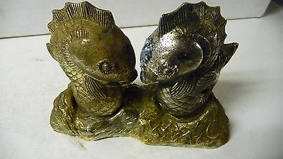 UNIQUE RARE -- VINTAGE PAIR OF FISH BRASS SALT AND PEPPER , Fish
