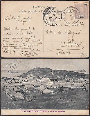 Cape Verde 1908 Used stamp on postcard ( S.Vicente ) to France..........R5849