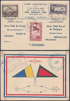 France / Belgium 1930 Used stamp +vignette on airmail memorial postcard....R5949