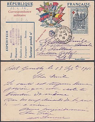 France 1917 Used vignette on decorative military postcard to inland...R5969