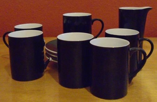 Title (ebay affiliate link): Set of Four Black Demitasse Cups, Six Saucers & a Creamer by Schmid