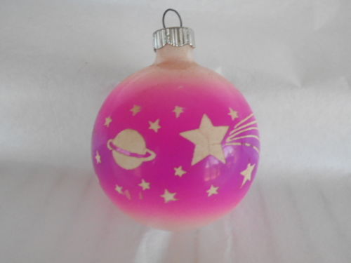 Title (ebay affiliate link): VTG MOON STARS SATURN STENCIL SHINY BRITE PINK WHITE GLASS UNSILVERED OMBRE ORNA