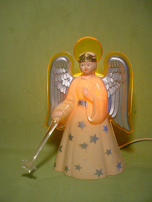 Vintage Lighted Angel Tree Topper Hard Plastic w Halo Edge
