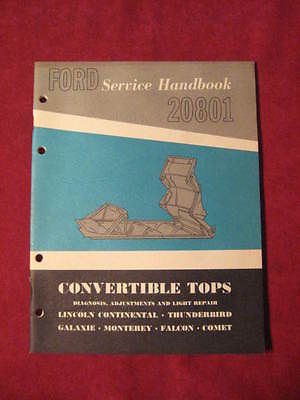 1962 Ford Lincoln Mercury Thunderbird Convertible top service handbook Original