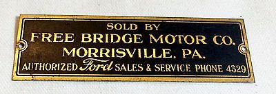 Antique FORD Sales & Service Free Bridge Motor Co. Morrisville, PA Body Plate