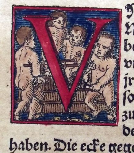 1549 LUTHER Bible LEAF - 2 WOODCUT INITIALS ORIGINAL - Leviticus 24-25