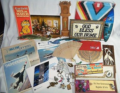 Title (ebay affiliate link): VTG Junk Drawer Lot~Old Aviation News~Clock Thermometer~Brass~Key Chains~Fans