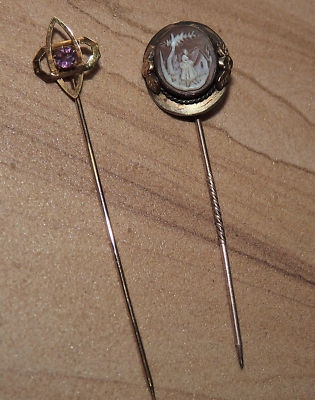 LOT OF 2 ANTIQUE STICK PINS- CARVED SHELL CAMEO