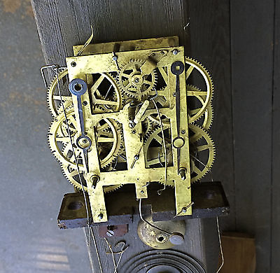 Antique New Haven Column Clock Brass Movement w/ Wood Mounts, Hands & Chime