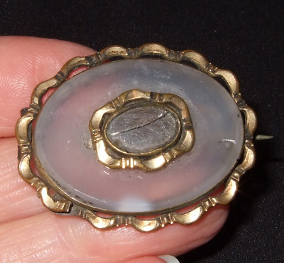 Antique Chalcedony Mourning Victorian Hair Brooch