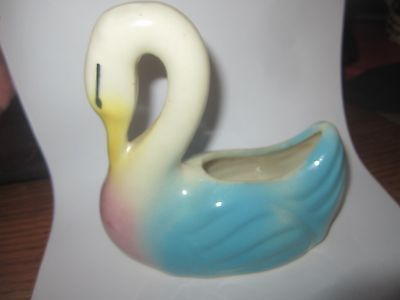 Title (ebay affiliate link): Vintage Older-VERY CUTE Colorful SWAN Planter-Nice Condition!
