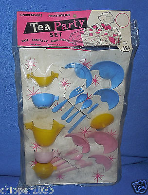 VINTAGE DELL PLASTICS 20 PC. TEA PARTY SET - 1950'S - NOS - RARE !!!