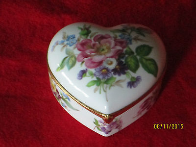 Heart shaped hand painted porcelain trinket box signed Limoges France