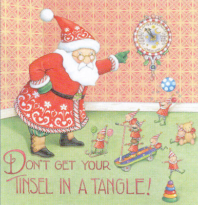 TINSEL TANGLE-Handcrafted Santa Christmas Magnet-using art by Mary Engelbreit