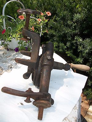 ANTIQUE CLAMP ON HAND CRANK BENCH GRINDER