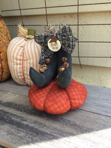 Title (ebay affiliate link): Halloween Witch Boots and Pumpkin Shelf Sitter - Primitive Witch Shoe