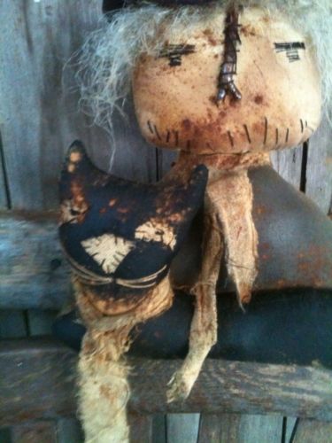 Title (ebay affiliate link): Primitive WICKED OL WITCH CUPBOARD SITTER DOLL WITH HER BLACK CAT FALL HALLOWEEN