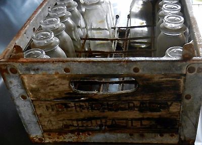 Oberweis Dairy Crate Pint bottles Wood and Metal Vintage Antique