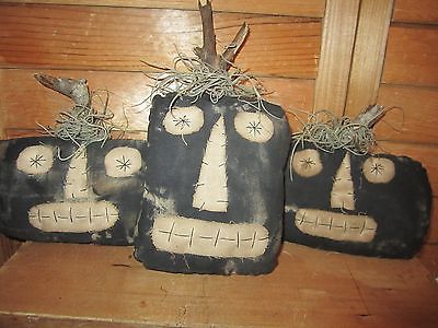 Primitive Pumpkins - set of 3 - grungy - black - stitched faces - onasburg