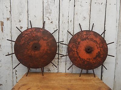 2 Old Vintage Cultivator Wheels ~ Rustic Farm Barn Decor Tools Crafts Welding