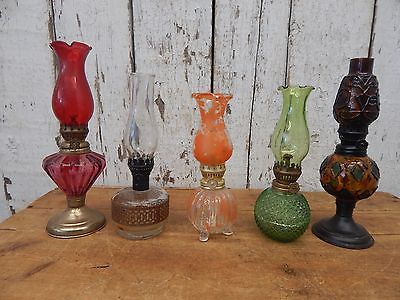 Title (ebay affiliate link): 5 Old Vintage Miniature Oil Lamps ~ Rustic Shabby Primitive Decor / Crafts