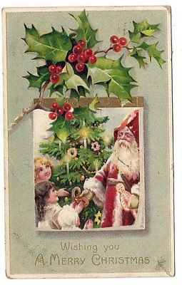 Title (ebay affiliate link): "Wishing You Merry Christmas" Santa, little Girls, Gingerbread Man 1909 Postcard