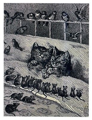modern cat postcard cute cats kittens in bed w mice & birds in a row