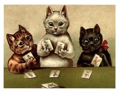 Title (ebay affiliate link): modern cat postcard black white & ginger tabby cats play cards poker faces