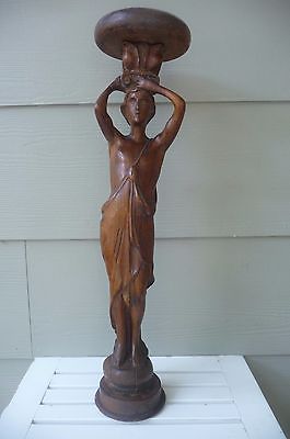 Antique Early 20thC Art Deco Carved Wood Nude Man Movie Theater Smoking Stand