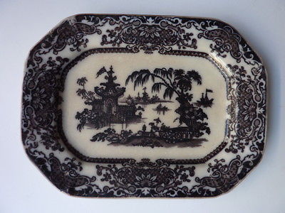 Title (ebay affiliate link): 11" Antique Podmora Walker & CO Corean Pearl Bone China Platter Black White