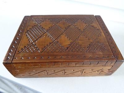 Vintage Carved Wooden Box Jewelry Storage Antique Handmade Tabacco Cigar Box
