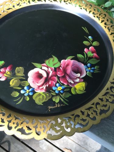 Title (ebay affiliate link): Vintage Nashco Metal Serving Tray Hand Painted Tole Ware Shabby French Chic