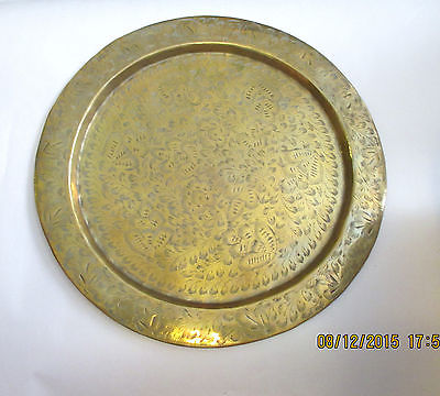 BEAUTIFUL HAND TURNED BRASS 11" TRAY / PLATE ~ EMBOSSED LEAVES