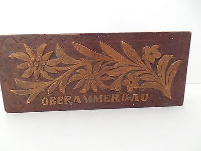 Hand carved hinged lidded box with flowers and Oberammegau carved on the top.